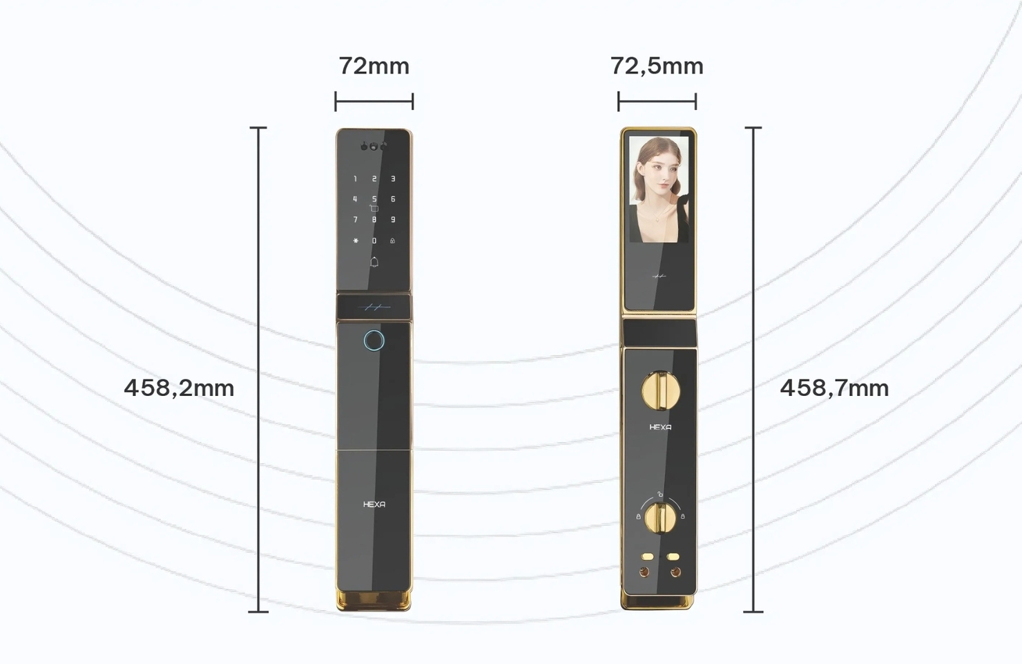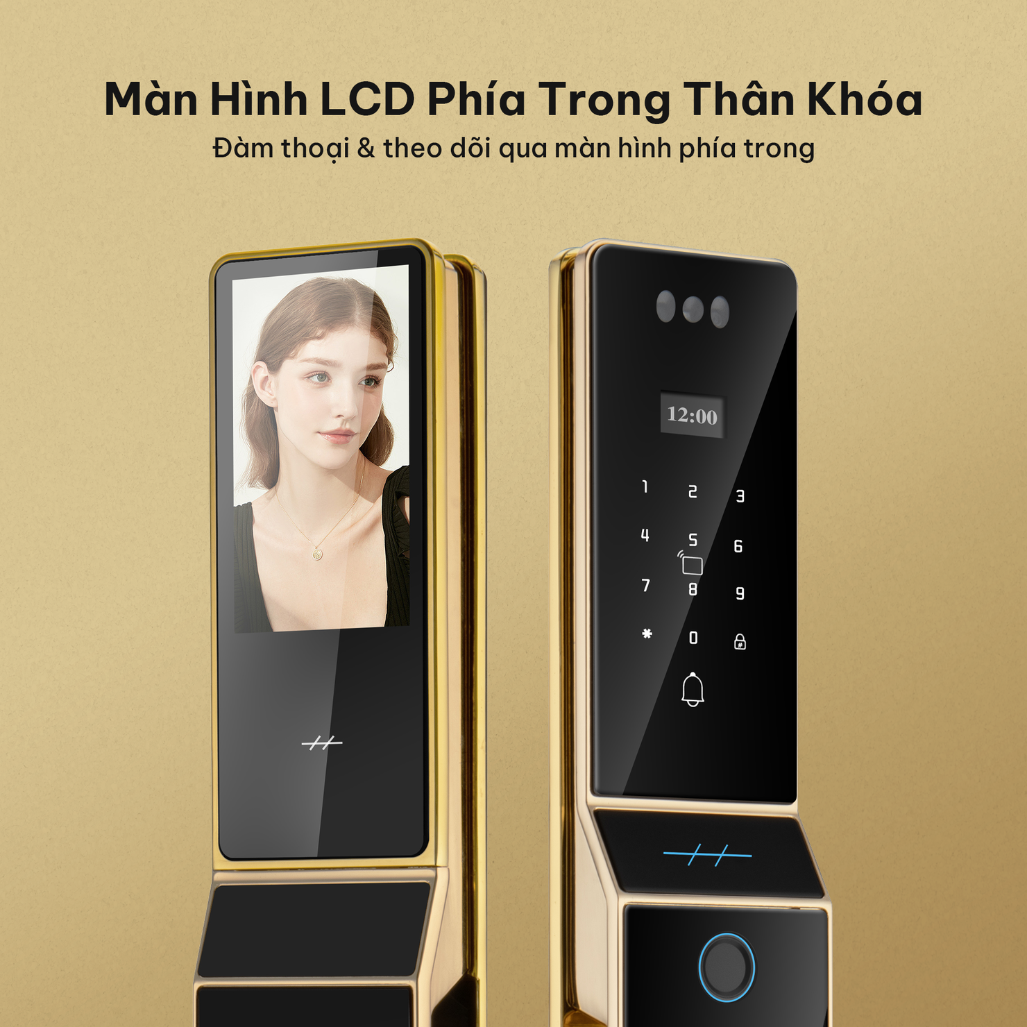 Khóa vân tay thông minh Hexa P100M-Pro được trang bị màn hình LCD đặt ở mặt trong thân khóa, cho phép người dùng quan sát khách trước cửa và đàm thoại hai chiều trước khi mở khóa. Đây là tính năng lý tưởng cho các gia đình có trẻ nhỏ, người lớn tuổi hoặc thường xuyên ở nhà một mình, đảm bảo vừa an toàn vừa tiện lợi trong từng lần ra vào.