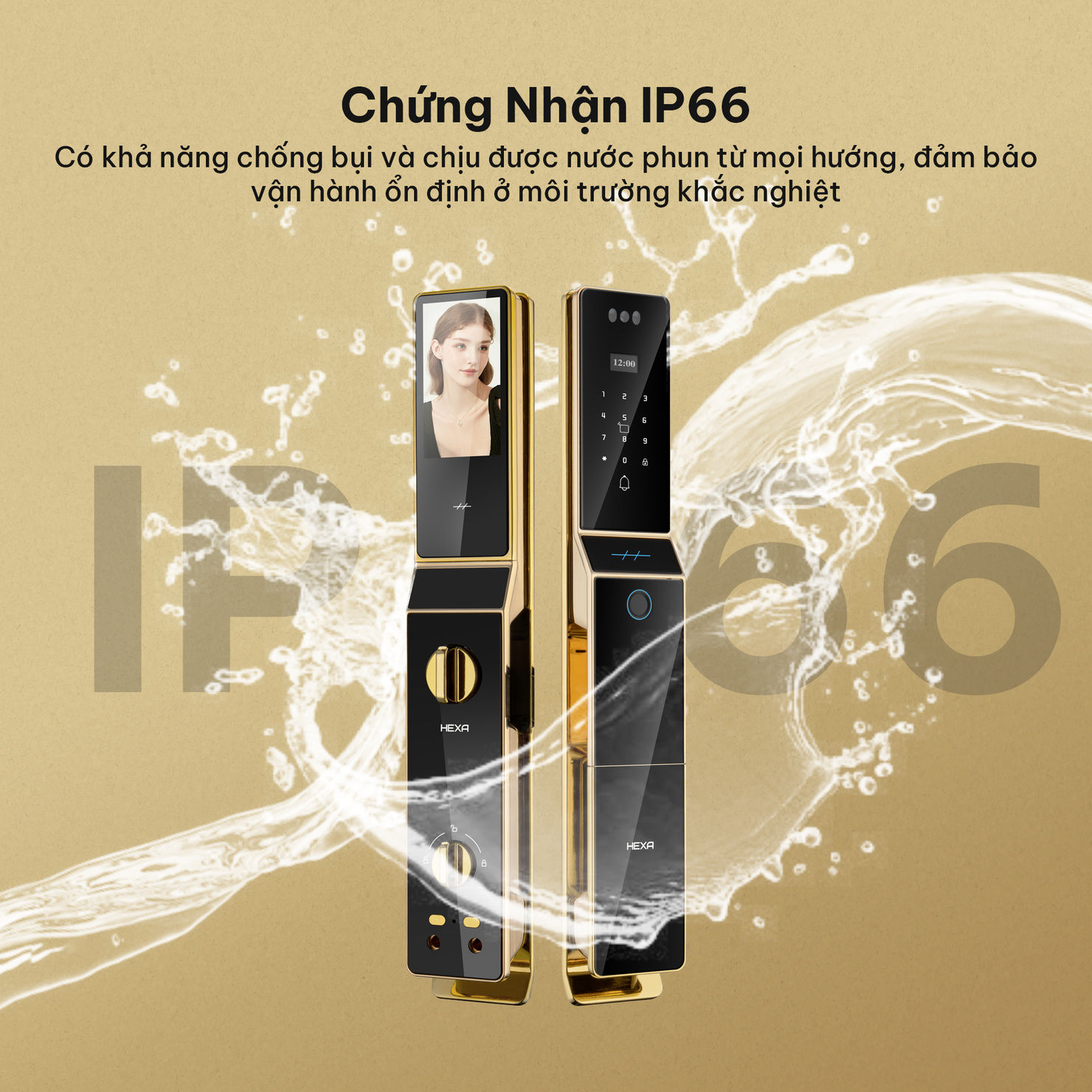 Với khí hậu nhiệt đới như Việt Nam, khóa điện tử Hexa P100M-Pro sẽ là lựa chọn lý tưởng khi sở hữu độ bền đạt chuẩn quốc tế IP66. Với khả năng chống bụi hoàn toàn và chịu được tia nước phun mạnh từ mọi hướng, sản phẩm vận hành ổn định ngay cả khi lắp ở khu vực mái hiên, ban công, hành lang hay môi trường ẩm ướt.