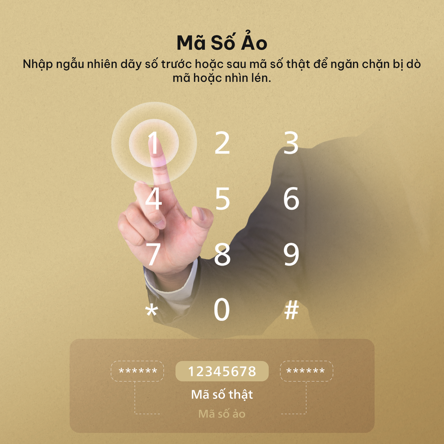 Mã số ảo thông minh: Cho phép nhập thêm dãy số bất kỳ trước hoặc sau mã thật, ngăn nguy cơ bị nhìn lén hay sao chép mã PIN.